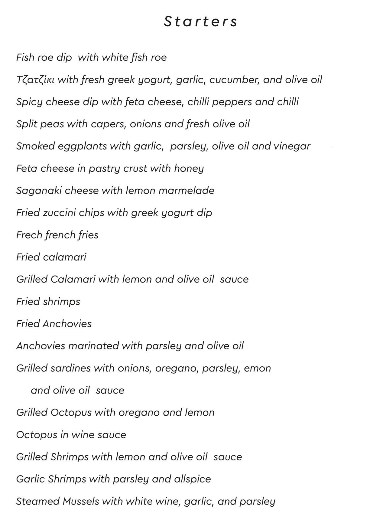 For those who don't prefer fish, we offer a variety of charcoal-grilled and cooked meat dishes from traditional Greek cuisine.