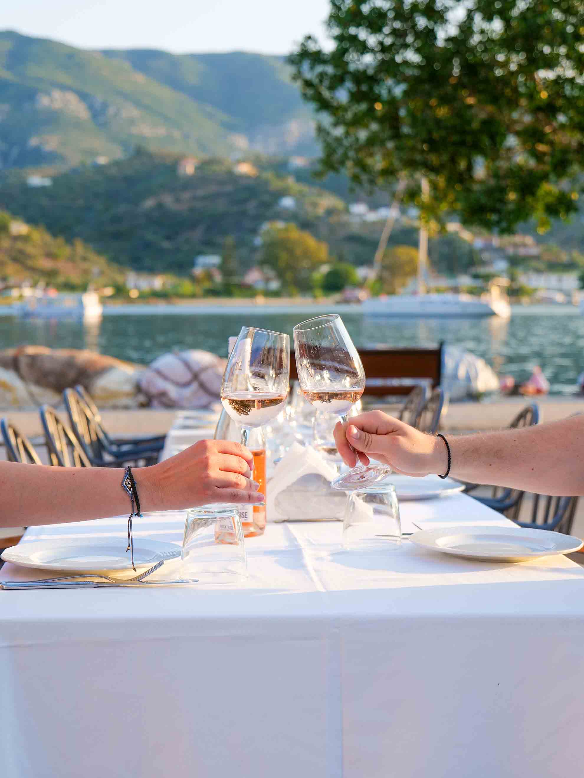 Θαυμάσιες ελληνικές σαλάτες φρέσκων λαχανικών, ξεχωριστοί μεζέδες και ορεκτικά, ολόφρεσκα οστρακοειδή μαζί με παγωμένο κρασί, συνοδεύουν το κυρίως γεύμα σας.